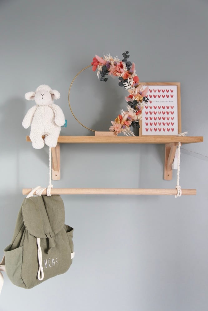 La couronne en fleurs séchées sur son socle en bois est personnalisable.